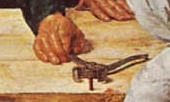 Another carpenter’s tool, perhaps here used to foreshadow the removal of Christ from the Cross.
